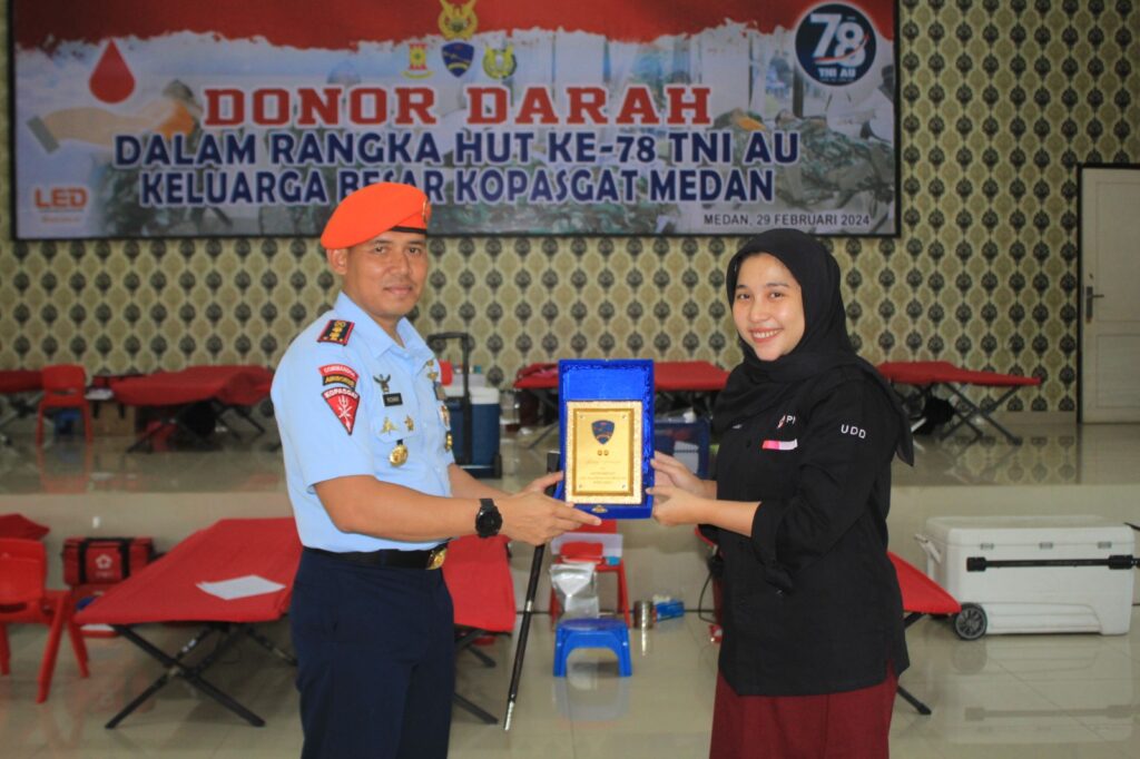 Dalam rangka memperingati HUT Ke-78 TNI Angkatan Udara, Kopasgat Wilayah Medan menggelar bakti sosial donor darah di Aula G Siahaan Yonko 469 Kopasgat. Rabu (29/02/2024)