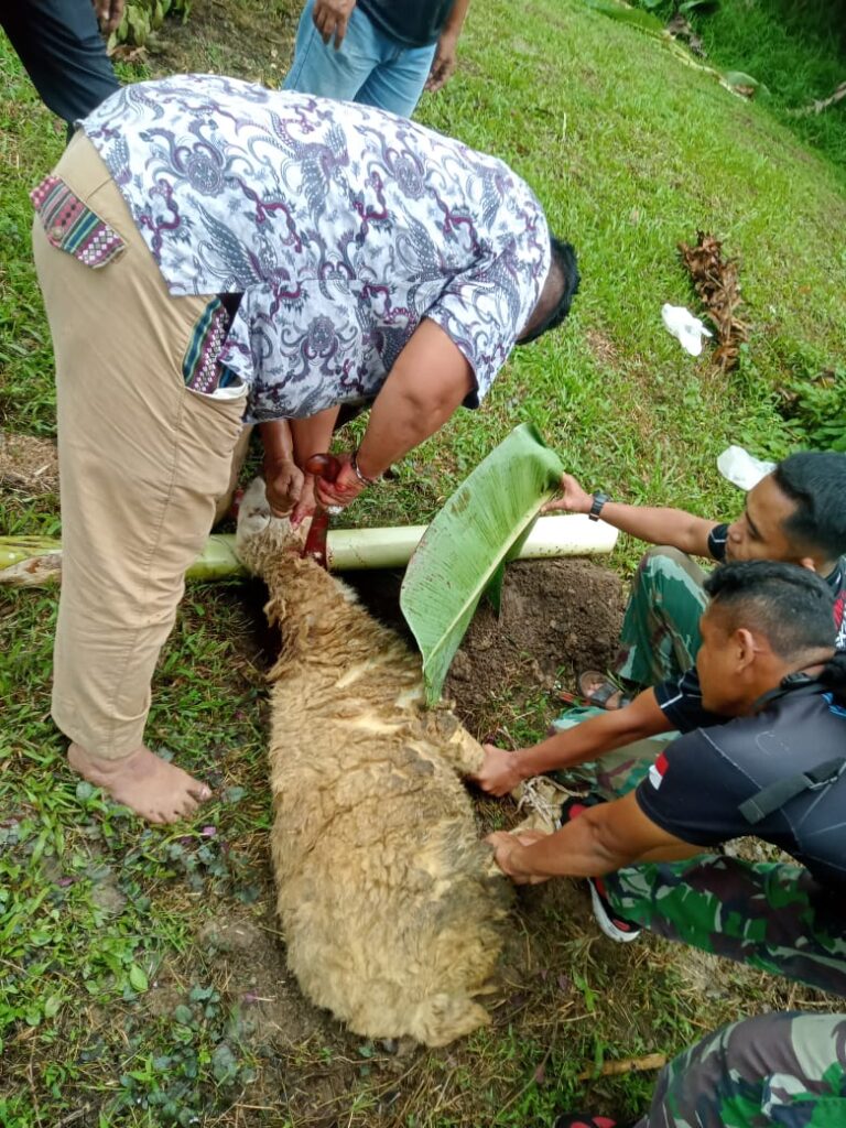 Pada kesempatan yang sama Komandan Wing Komando III Kopasgat menyerahkan hewan Qurban kepada Danyonko 469 kopasgat dan panitia penyembelihan hewan Qurban Markas Wing Komando III kopasgat.