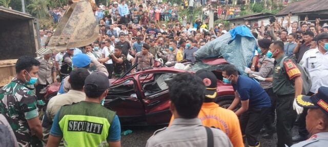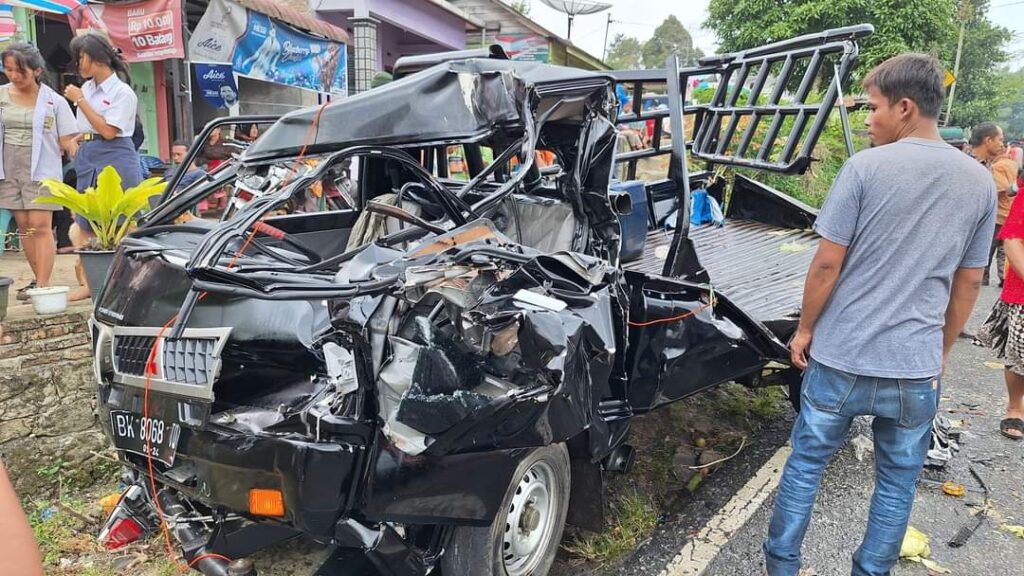 Pada hari Rabu 24 Januari 2024 PKL 13.30 Wib Mobil Truk Box Pengangkut Air Aqua galon dari Arah Berastagi Menuju Pematang Siantar mengalami Rem blong di Kelurahan Merek Raya Posisi jalan menurun sehingga Menabrak Mobil yang Parkir di tepi jalan dan Mobil yang melintas berlawanan arah dan Mobil Box Terbalik Menimpa Mobil penumpang Rush warna Merah BK 1391 WZ berisikan Penumpang 7 orang Rombongan Guru SMK 1 Jalan Asahan Km 4 Pematangsiantar.