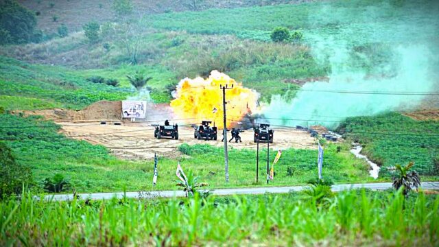 TNI Angkatan Udara menggelar Latihan Matra Udara II Jalak Sakti dan Trisula Perkasa Kopasgat TA. 2024. Area Weapon Range (AWR) Lanud Pangeran M. Bun Yamin Lampung berubah menjadi medan latihan spektakuler. (Selasa, 11/6/2024).