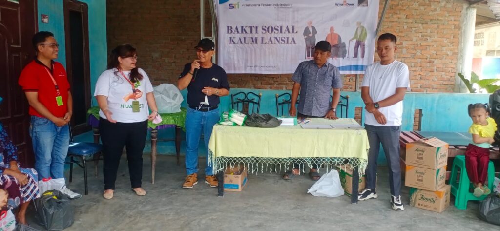 Dalam acara bakti sosial ini PT Sumatera Timber Indo Industry (STI) memberikan bantuan kepada Lansia berupa Beras,Minyak makan dan lainnya dan perlu diketahui bersama bahwa Ini merupakan suatu kegiatan yang sudah sering dilaksanakan oleh PT STI dan merupakan suatu program utama dari PT STI.