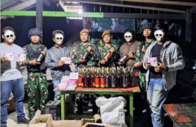 Personil Satgas Bais TNI (Satgas Catur, Satgas Dempo) beserta Satgas Pamtas RI-Malaysia Yonarhanud 8/MBC Pos Bukit Keramat berhasil menggagalkan penyelundupan 46 botol minuman keras (miras) merk Red Bull, 24 botol miras Black Jack dan kosmetik merk Berlian sejumlah 256 pices di depan Pos Dalduk Bukit Keramat, Kabupaten Nunukan, Kalimantan Utara,