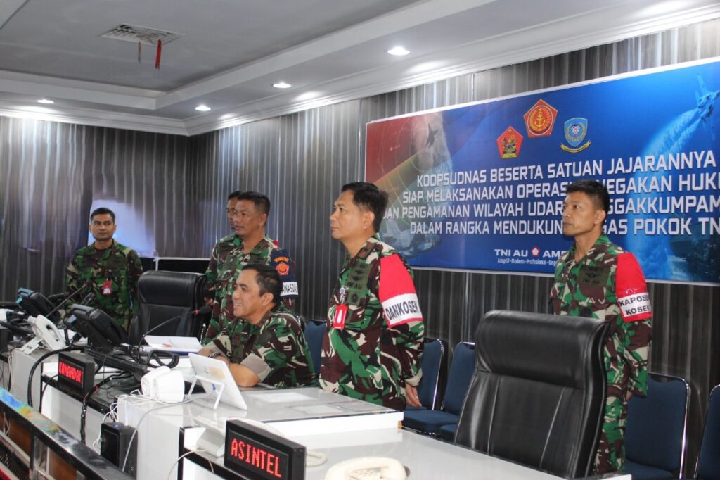 Komandan Komando Sektor I Marsekal Pertama TNI Toto Ginanto, S.T., M.A.P., M.Han., mendampingi kunjungan Wadankodiklat TNI Marsda TNI Widyargo Ikoputra, S.E., M.M., ClQaR. meninjau Latihan Kesiapsiagaan Operasional Penegakan Hukum dan Pengamanan Wilayah Udara Komando Operasi Udara Nasional (Koopsudnas) T.A 2024 di Ruang Yudha Posek Kosek I, Medan, Sumatera Utara. (Selasa, 16/7/2024).
